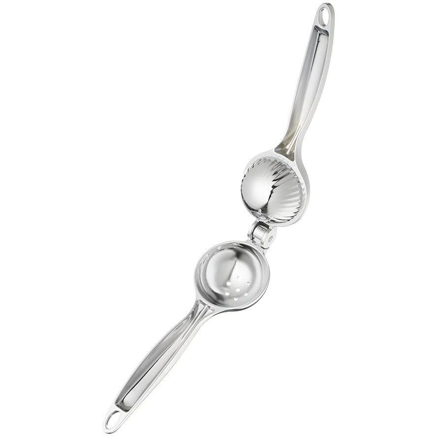 آبلیمو گیر دستی شنگیا مدل E2843 سایز کوچک از استیل ضدزنگ ساخته شده و بهصورت اهرمی طراحی شده است تا با فشار کم، حداکثر آب لیمو ترش و سایر مرکبات کوچک را بدون ورود هسته بگیرد. بدنه و دسته تمام استیل، ابعاد تقریبی 19.5 در 6 سانتیمتر و طراحی ارگونومیک، این آبلیموگیر را برای استفاده روزمره در منزل، کافه و رستوران و شستوشو با دست یا ماشین ظرفشویی مناسب کرده است