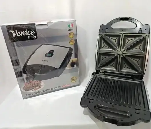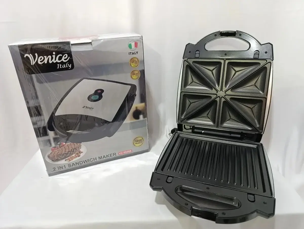 اسنک ساز دوکاره ونیز مدل VC-9926B با قدرت 1400 وات، قابلیت ساندویچ و گریل، صفحات تفلون نچسب، بدنه مقاوم، چراغهای نشانگر و قفل ایمنی برای حمل آسان ارائه میدهد. مناسب پخت سریع ساندویچهای ترد و گریل گوشت و سبزیجات؛ ابعاد جمعوجور و طراحی ایتالیایی با کیفیت بال