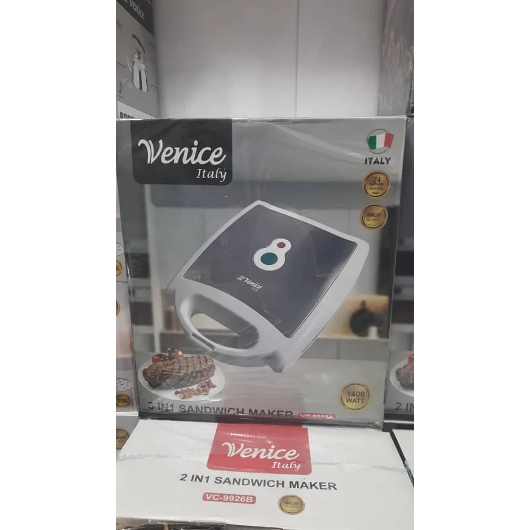 ساندویچ ساز ونیز VC-9923A با توان 1400 وات و سه صفحه قابل تعویض (صفحه ساندویچ مثلثی، صفحه گریل و صفحه وافل/استیک) گزینهای مناسب برای تهیه انواع اسنک، تست، برگر و استیک در کمترین زمان است. بدنه مقاوم با دستگیره عایق حرارت، روکش نچسب صفحات برای جدا شدن آسان مواد غذایی و تمیزکاری راحت، چراغ نمایشگر وضعیت و پایه ضدلغزش از ویژگیهای مهم این مدل هستند. وجود قفل درب، طراحی کمجا و ظاهر مدرن، آن را به انتخابی مناسب برای آشپزخانههای خانگی و کافههای کوچک تبدیل میکند