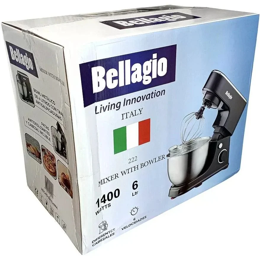 همزن کاسه‌دار ۶ لیتری بلاجیو مدل NEW کد 222 توان ۱۴۰۰ وات شش سرعته با عملکرد پالس و کاسه استیل چرخان
