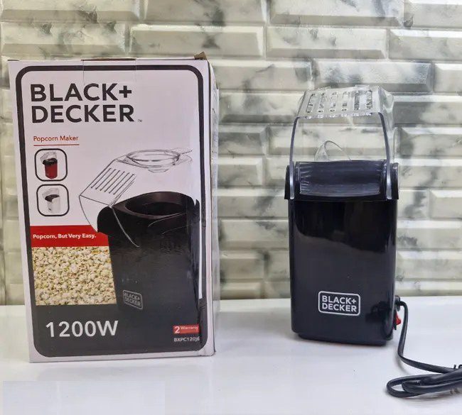 پاپ کورن ساز بلک اند دکر BXPC1200E با توان 1200 وات و سیستم پخت با هوای داغ، بدون نیاز به روغن ذرت را در چند دقیقه به پفیلا ترد و رژیمی تبدیل می‌کند و برای استفاده در مهمانی، تماشای فیلم و میان‌وعده کودکان بسیار مناسب است. بدنه پلاستیکی مقاوم، طراحی جمع‌وجور، ظرف مخصوص ریختن ذرت و دکمه روشن/خاموش ساده، استفاده و شست‌وشوی دستگاه را آسان کرده و آن را به انتخابی کاربردی برای آشپزخانه‌های خانگی تبدیل کرده است.