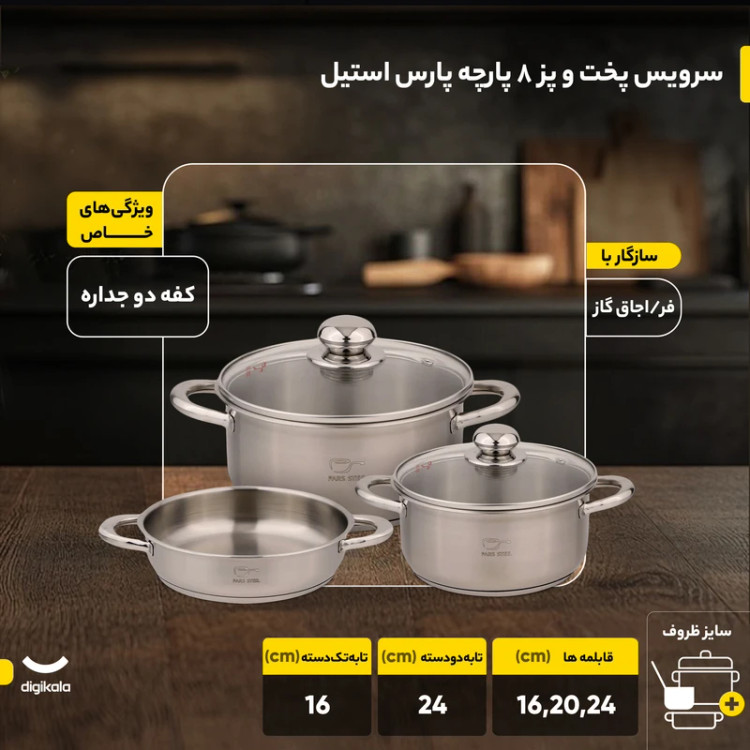 سرویس قابلمه پارس استیل ۸ پارچه با کف سه لایه