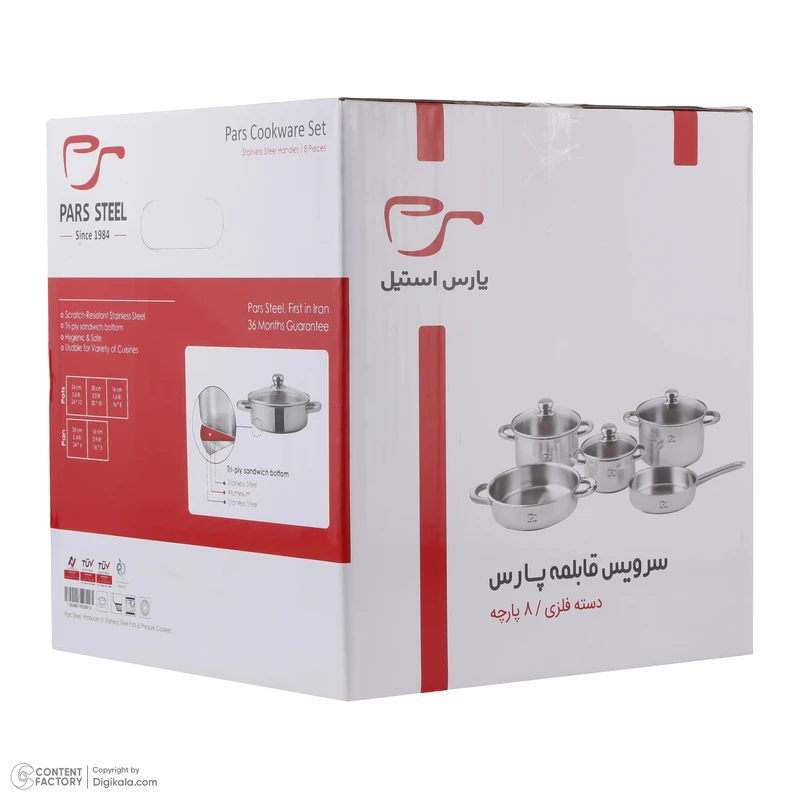 سرویس قابلمه پارس استیل ۸ پارچه با کف سه لایه